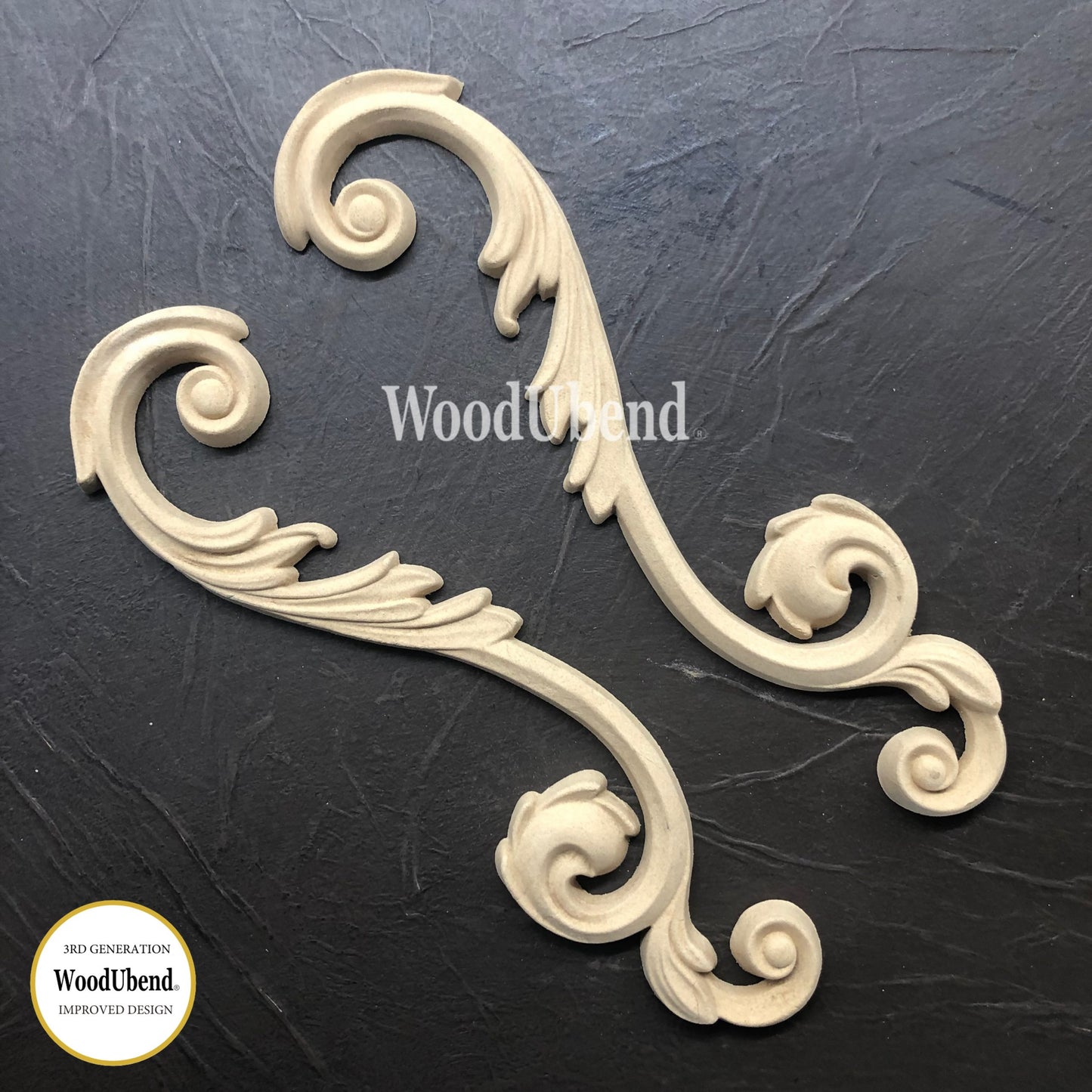 This pack of 2 decorative curls is a WoodUbend product.