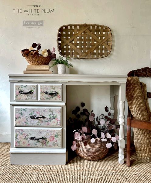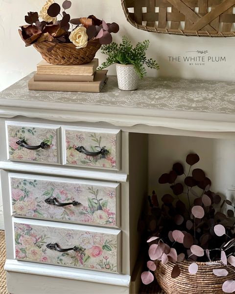 Als het découpagepapier dat u hebt gekozen licht is, kan de kleur van het meubilair doorschijnen. Daarom kan je er misschien voor opteren om de ondergrond eerst te verven in een complementaire basiskleur.