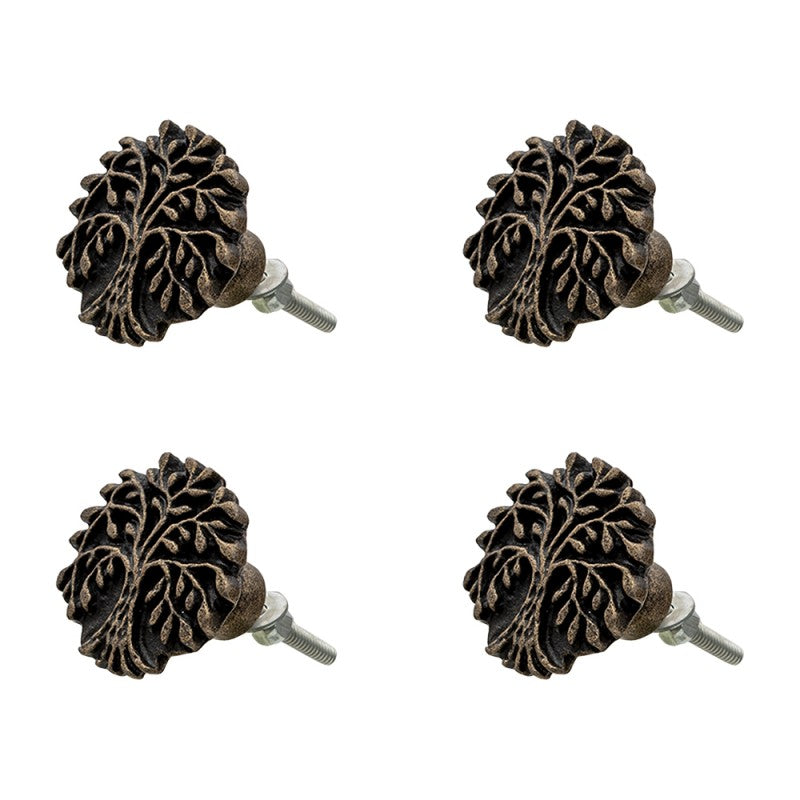 Deurknop Set van 4 Ø 4 cm Bruin Ijzer Boom Rond